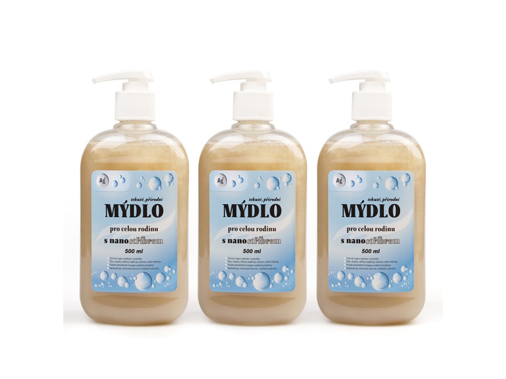 3 x PŘÍRODNÍ TEKUTÉ MÝDLO S OBSAHEM NANOSTŘÍBRA 500 ML