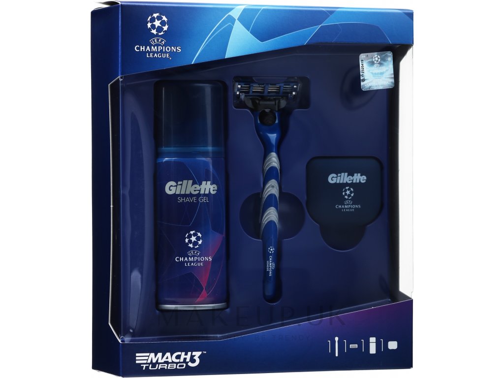Sada Gillette Mach3 TURBO CHAMPIONS LEAGUE limited edition obsahuje: